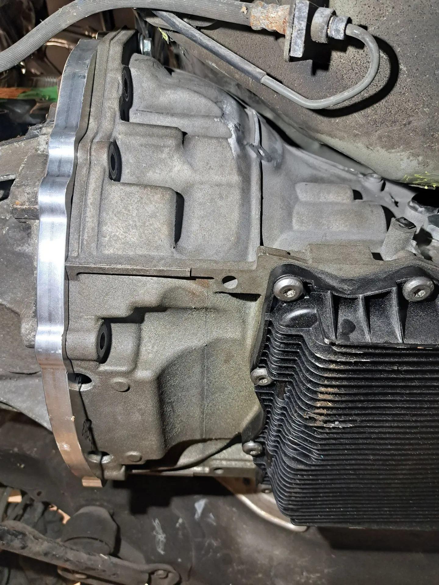 While developing our 2JZ adapter plate for the Dodge 8HP70, we also examined the Dodge 8HP45 from a V6 RWD Charger to see if it could be a good, budget-friendly alternative. We purchased one and created a variation of our adapter plate to fit the Dodge 8HP45 (or 845RE as Chrysler call it) as well. Right away, we noticed a few differences: the bellhousing bolt pattern isn’t identical to the 8HP70, and the transmission mount also varies slightly. Overall dimensions, however, are very similar. The bellhousing size is nearly the same, so there aren’t any major clearance advantages.